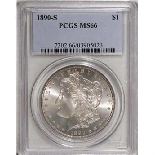 <B>1890-S $1 MS66 PCGS.</B></I> Few finer examples of the 1890-S Morgan dollar have been certified. NGC has only graded one better example, and PCGS has only examined five finer pieces (1/08). The surfaces are fully brilliant and the strike is sharp. Both sides have frosty silver luster that creates exceptional aesthetic appeal.<BR><BR><B>Coin Engraver:</B> George T. Morgan<BR><BR><b>Shipping:</b> Coins & Currency (<a target="_blank" href="http://www.heritageauctions.com/common/shipping.php">view shipping information</a>)
