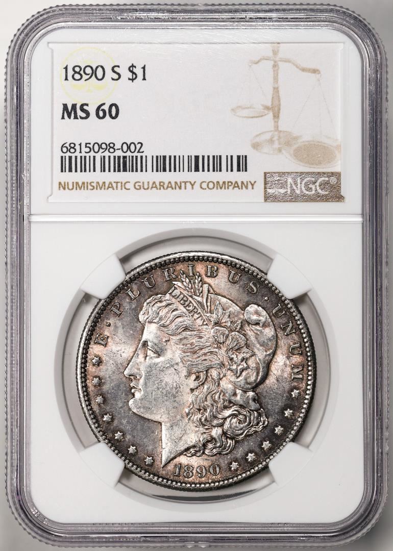 One 1890-S $1 Morgan Silver Dollar Coin NGC MS60. NGC Certified.