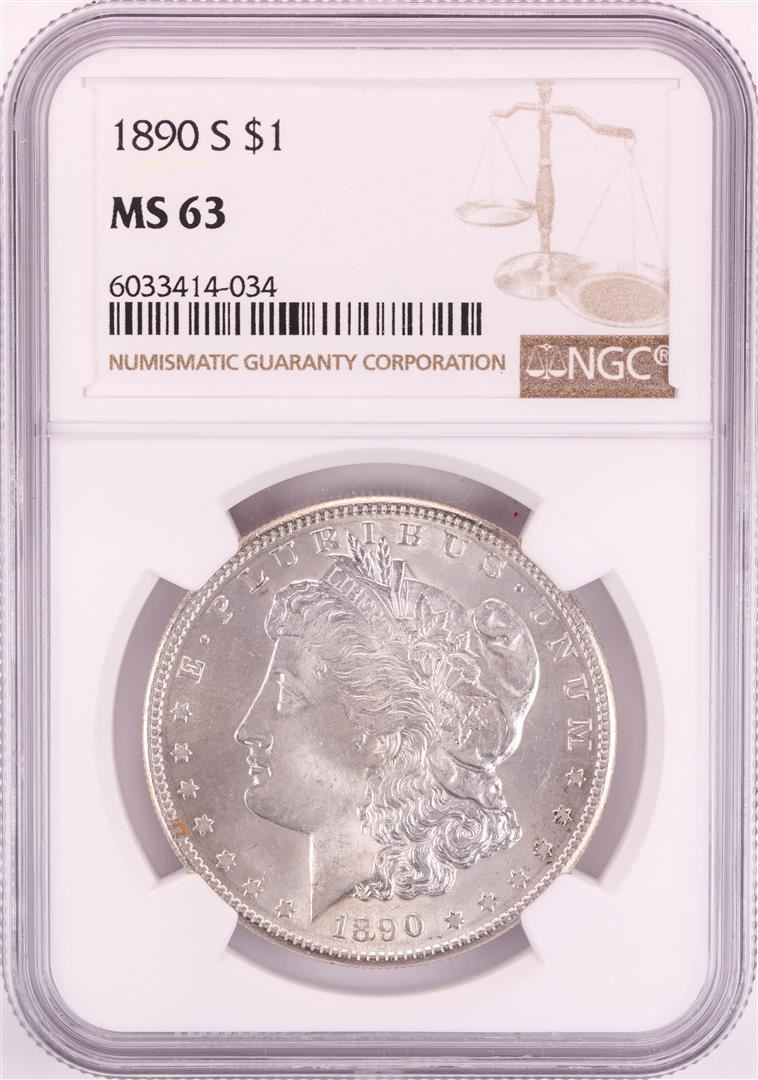 One 1890-S $1 Morgan Silver Dollar Coin NGC MS63. NGC Certified.