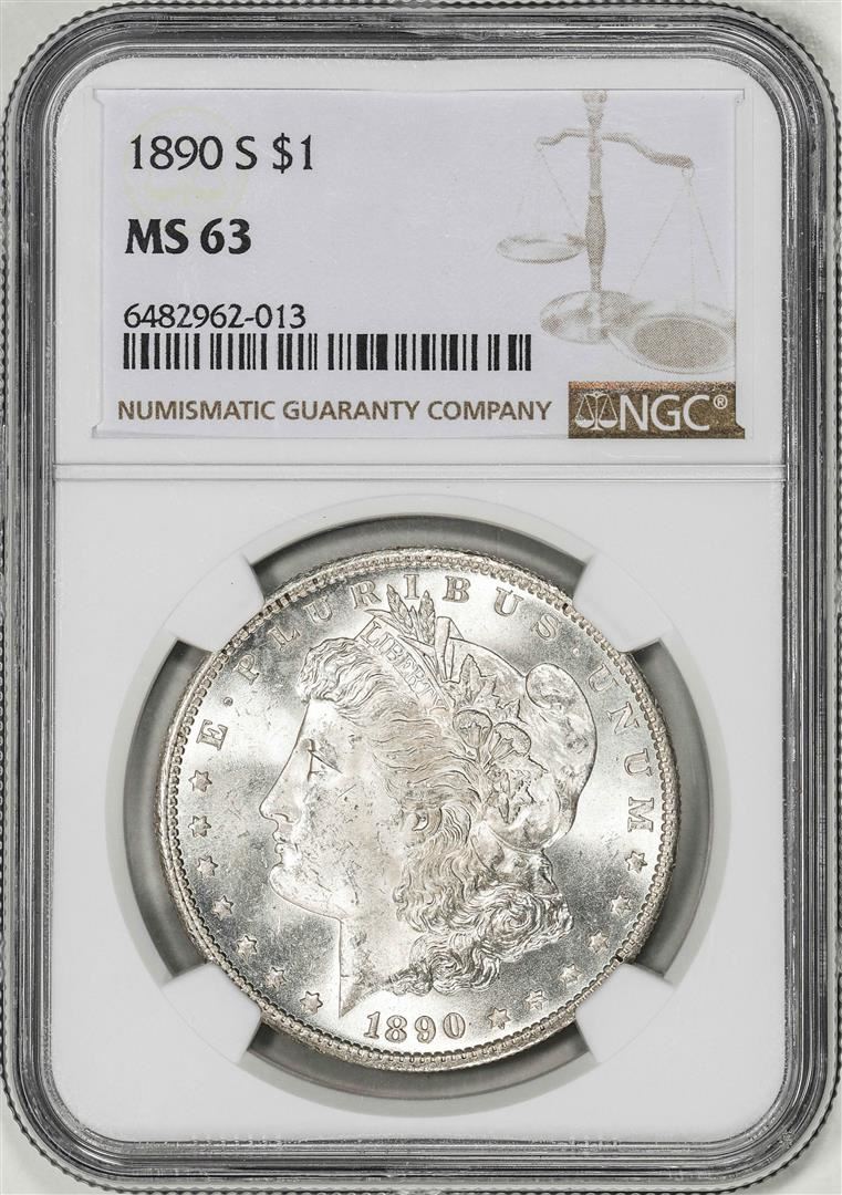 One 1890-S $1 Morgan Silver Dollar Coin NGC MS63. NGC Certified.