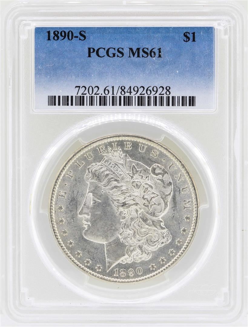 One 1890-S $1 Morgan Silver Dollar Coin PCGS MS61. PCGS Graded.