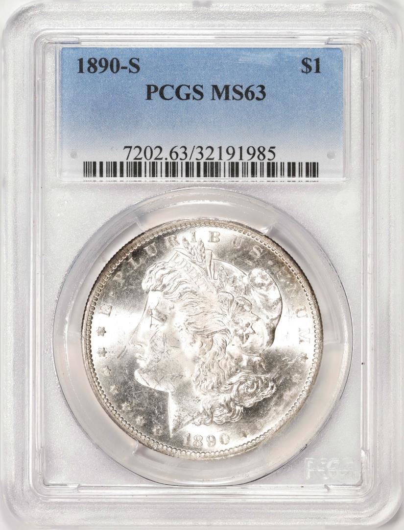 One 1890-S $1 Morgan Silver Dollar Coin PCGS MS63. PCGS Graded.