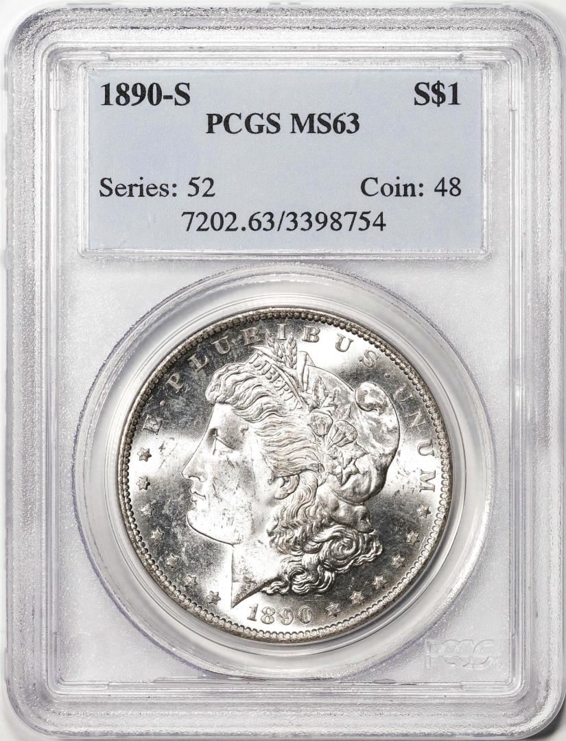 One 1890-S $1 Morgan Silver Dollar Coin PCGS MS63. PCGS Graded.