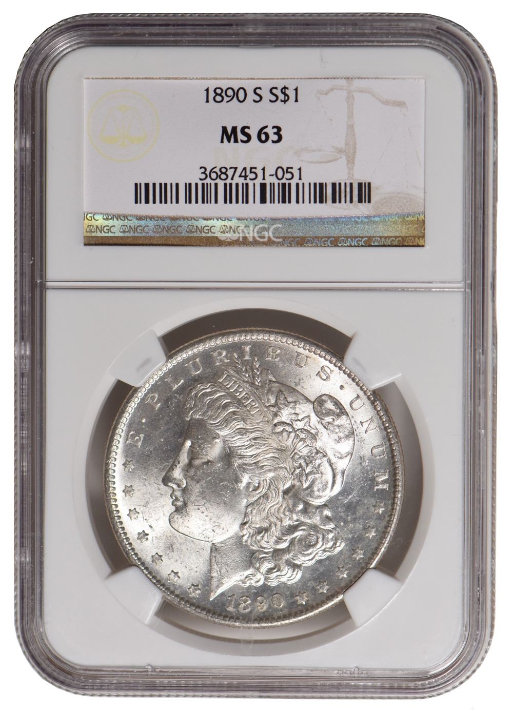 One 1890-S $1 Morgan Silver Dollar NGC MS63.