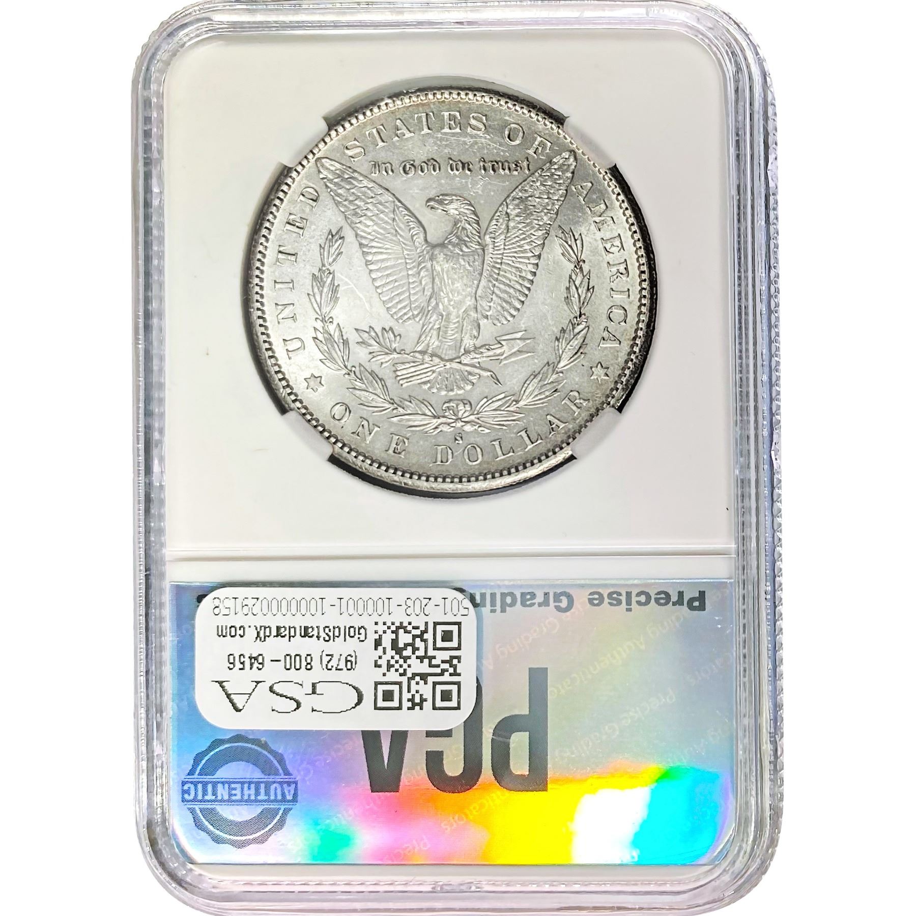 e. Coins sold referencing a third-party grading service are sold “AS IS” without any express or implied warranty, except for a guarantee by GSA that they are genuine. Removal or alteration of the holder, voids all of Bidder’s claims concerning that Product. Certain warranties may be available from the grading services and Bidders are referred to them for further details: Numismatic Guaranty Corporation (NGC), PO Box 4776, Sarasota, FL 34230, www.ngccoin.com/services/writtenguarantee.asp; Professional Coin Grading Services (PCGS), PO Box 9458, Newport Beach, CA 92658, www.pcgs.com/guarantee.html; ANACS, 6555 S. Kenton St., Ste. 303, Englewood, CO 80111; and Independent Coin Grading Co. (ICG), 7901 East Bellview, Ave., Suite 50, Englewood, CO 80111.