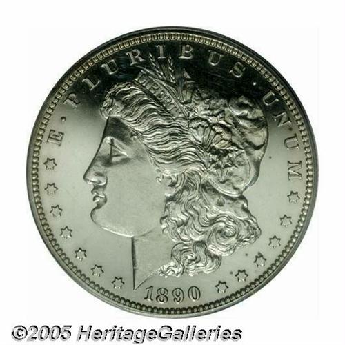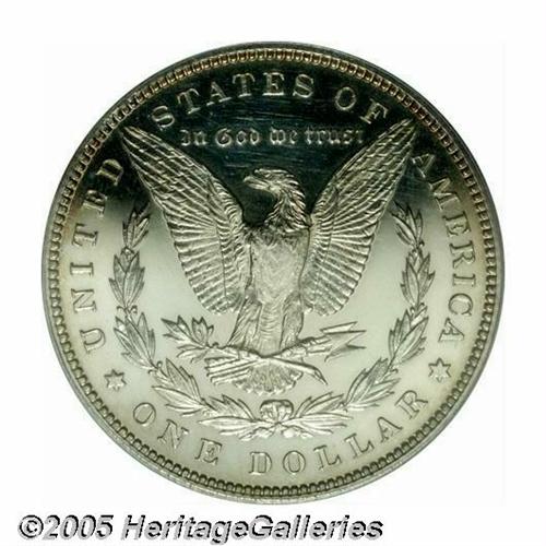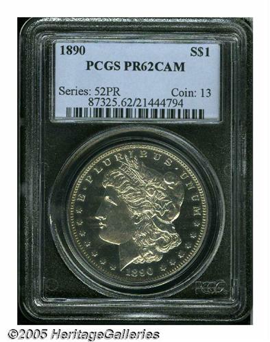 <B>1890<S$1> PR62 Cameo PCGS.</B></I> Mostly brilliant with just the slightest bit of color present around the margins, the fields are exceptionally deep in their mirrored reflectivity. A very pleasing proof for the grade.