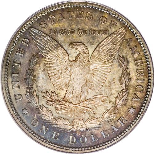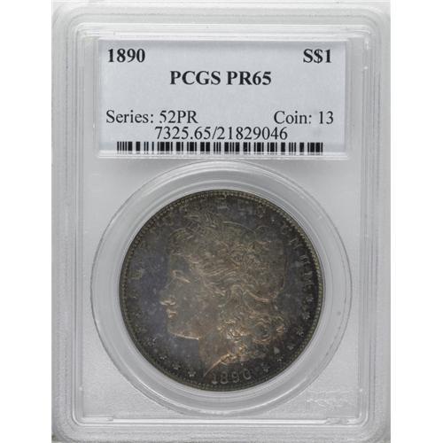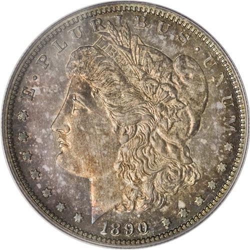 1890 S$1 PR65 PCGS. Intense, iridescent cobalt-blue an