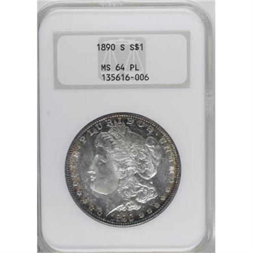 <B>1890-S $1 MS64 Prooflike NGC.</B></I> NGC Census: (1737/321). PCGS Population (2254/652). Mintage: 8,230,373. Numismedia Wsl. Price for NGC/PCGS coin in MS64: $220. (#7202)<BR><BR><B>Coin Engraver:</B> George T. Morgan<BR><BR><b>Shipping:</b> Coins & Currency (<a target="_blank" href="http://www.heritageauctions.com/common/shipping.php">view shipping information</a>)