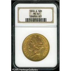 <B>1890-S $20 MS62 NGC.</B></I> Lightly colored and exceptionally lustrous with design detail that is boldly impressed. <BR><I>Ex: MGS & NSI 3/00.</B></I><BR><I>From The Richard J. Chouinard Collection of United States Coins, Part Two.</B></I> Lot:9221