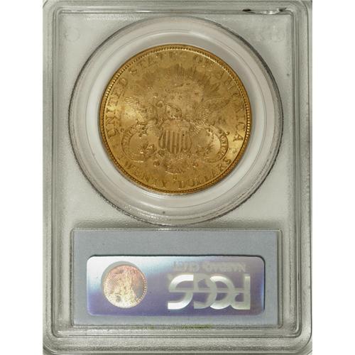 1890-S $20 MS62 PCGS. A bright, frosty appearance is o