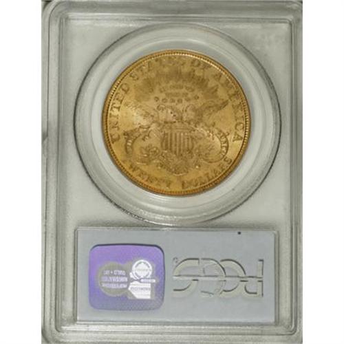 <B>1890-S $20 MS62 PCGS.</B></I> An attractive example of this later 19th century S-mint issue, well struck with slightly satiny yellow-orange surfaces. Scattered, wispy abrasions combine to preclude Select status.<BR><BR><B>Coin Engraver:</B> James B. Longacre<BR><BR><b>Shipping:</b> Coins & Currency (<a target="_blank" href="http://www.heritageauctions.com/common/shipping.php">view shipping information</a>)