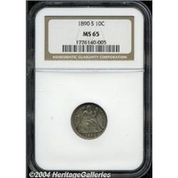 <B>1890-S MS 65 NGC.</B></I> Large/Small S. FS-006. This is a gorgeous and desirable coin irrespective of date or variety. The luster is rich with a satiny texture, the devices are uncommonly well struck in all but a few areas. Both sides are overlaid in warm reddish-russet patina with apricot, and sea-green iridescence around the rims. Remnants of the undermintmark are evident under a loupe. <BR><BR><B>Important notice:</B> Heritage usually auctions material at the rate of 200-250 lots per hour. On some occasions eBay Live bid software or the Internet may not be able to keep up with the pace of the auction. We recommend placing a realistic absentee bid now as insurance to avoid disappointment. Occasionally the auctioneer may eliminate or reject an eBay Live bid, and the auctioneer may also reopen a lot after the close of the eBay live bidding (usually because we missed an audience bid), and may reject your bid even if it shows you as the winning bidder. By bidding via eBay Live, you agree that Heritage may award the lot to another bidder at its sole discretion under the circumstances described above or any other reasonable circumstances. Since eBay bids are not shown to us until we open the lot on the floor, we treat those bids just like floor bids. In most cases the floor responds before the eBay bid is presented to us, due to Internet lag time, so for consistency we have made it a policy that floor bids are always considered first over tie eBay live bids. Also please note that all Heritage lots purchased through eBay Live carry a 20% Buyer's Premium. Please make sure you read the Terms and Conditions before you bid. </span></font></tr></table></td></tr></table>