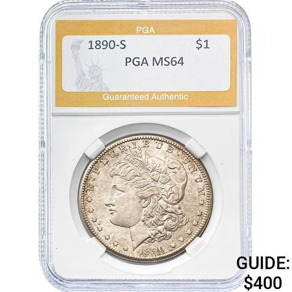 COINS AND CURRENCY LISTED IN GSA’S CATALOG AS GRADED AND ENCAPSULATED BY PCGS, NGC, ANACS, ICG, PCGS CURRENCY, PMG, PCGS BANKNOTE GRADING, CMC OR ANY OTHER THIRD-PARTY GRADING SERVICE ARE LIKEWISE SOLD “AS-IS” EXCEPT AS EXPRESSLY SET FORTH HEREIN. ALL THIRD-PARTY GRADING SERVICE GUARANTEES, INCLUDING AUTHENTICITY, ARE THE SOLE RESPONSIBILITY OF THE THIRD-PARTY GRADING SERVICE AND NOT WARRANTIES OR GUARANTEES OF GSA. BIDDERS SHOULD CONTACT THESE THIRD-PARTY GRADING SERVICES DIRECTLY WITH RESPECT TO ANY CLAIMS OR QUESTIONS THEY MAY HAVE CONCERNING THEIR GUARANTEES AND WARRANTIES. BIDDERS ACKNOWLEDGE AND AGREE THAT AUCTIONEER IS NOT BOUND BY OR LIABLE FOR ANY OPINION OR CERTIFICATION BY ANY THIRD-PARTY GRADING SERVICE. REMOVAL OF A PRODUCT FROM ITS PROTECTIVE CASING OR HOLDER OR ALTERATION OF ANY COIN HOLDER WAIVES ALL RIGHTS CONCERNING THE PRODUCT CONTAINED THEREIN.