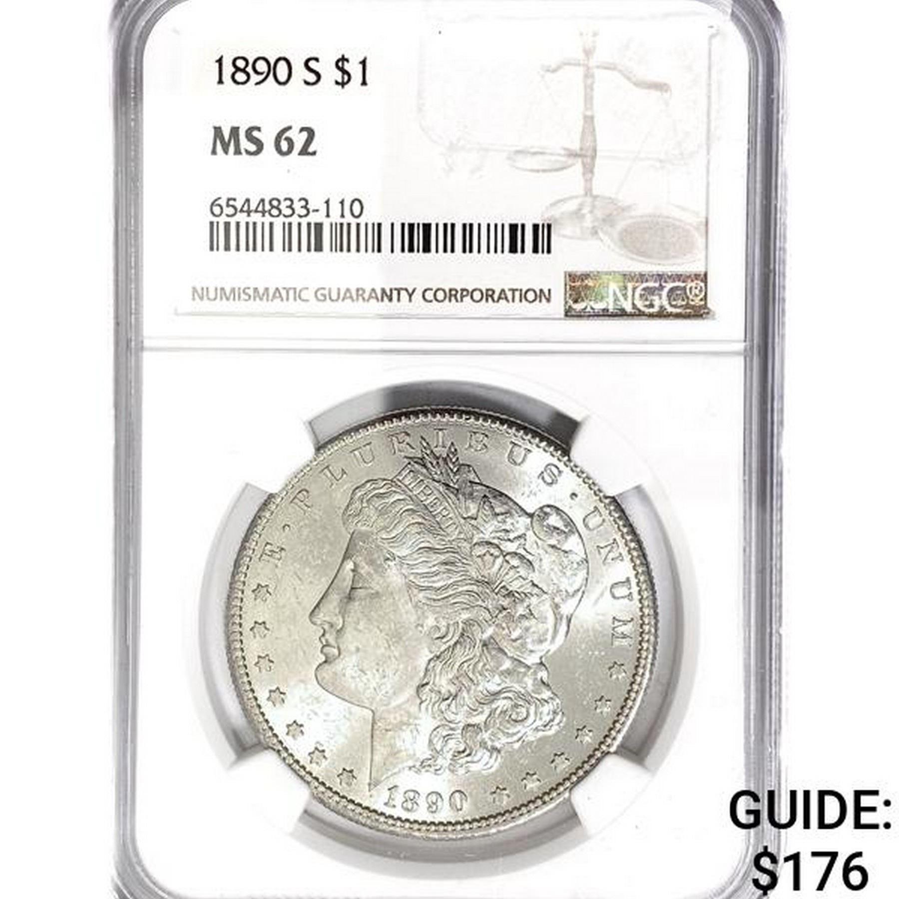 1890-S Morgan Silver Dollar NGC MS62