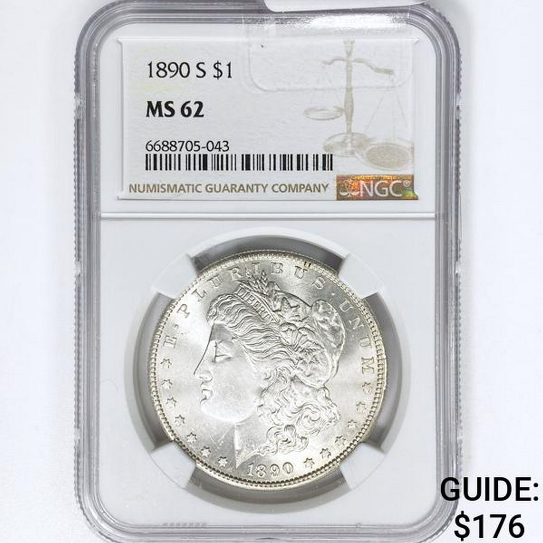 1890-S Morgan Silver Dollar NGC MS62