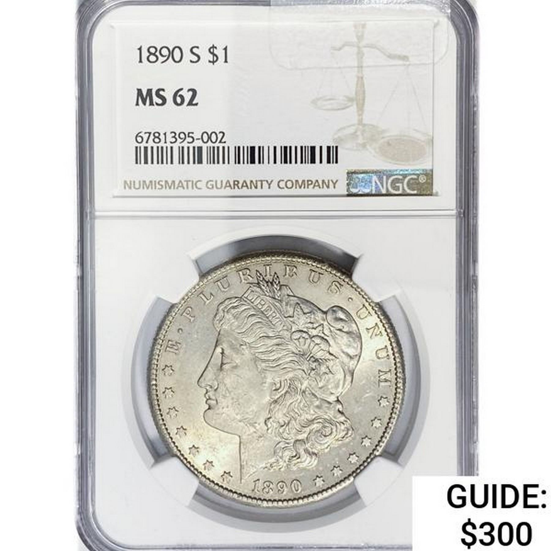1890-S Morgan Silver Dollar NGC MS62