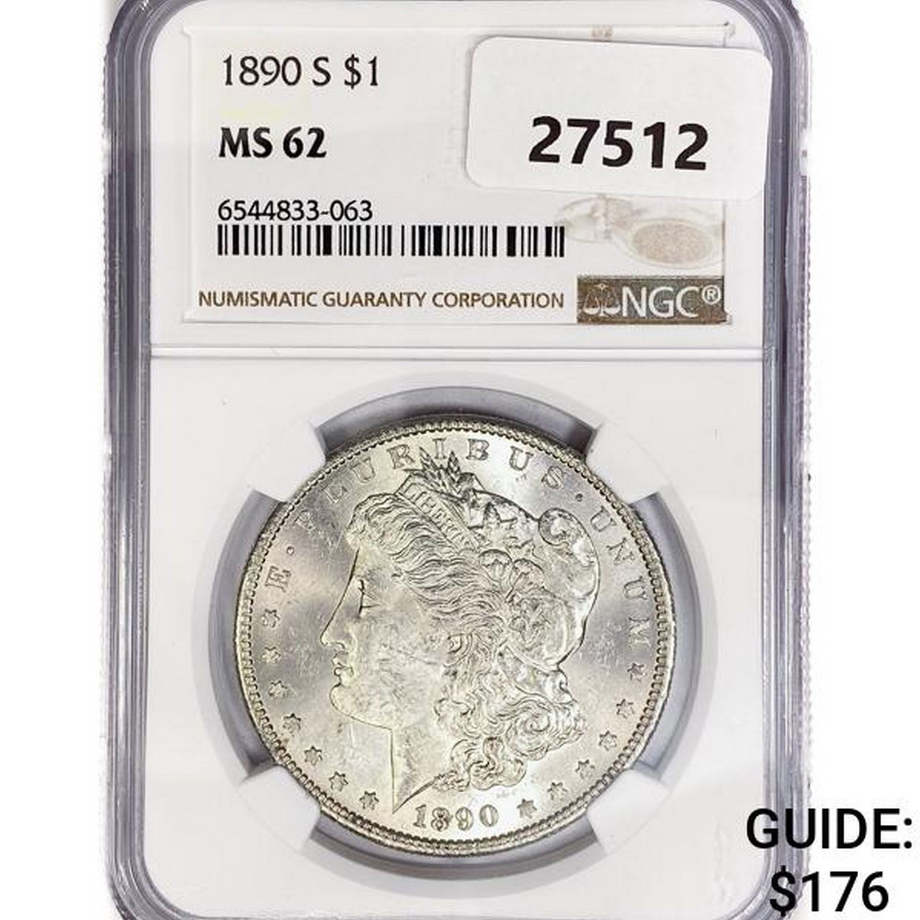 1890-S Morgan Silver Dollar NGC MS62