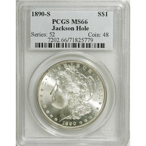 <B>1890-S S$1 MS66 PCGS.</B></I> Ex: Jackson Hole. Superb frosted luster rolls around this brilliant coin as it is tilted in the light. Only a couple of minor bagmarks separate this sharply struck piece from an even more illustrious grade. A beautiful Premium Gem that falls into the "must see" category.<BR><I>From The Jackson Hole Collection.</B></I><BR><BR><b>Shipping:</b> Coins & Currency (<a target="_blank" href="http://www.heritageauctions.com/common/shipping.php">view shipping information</a>)