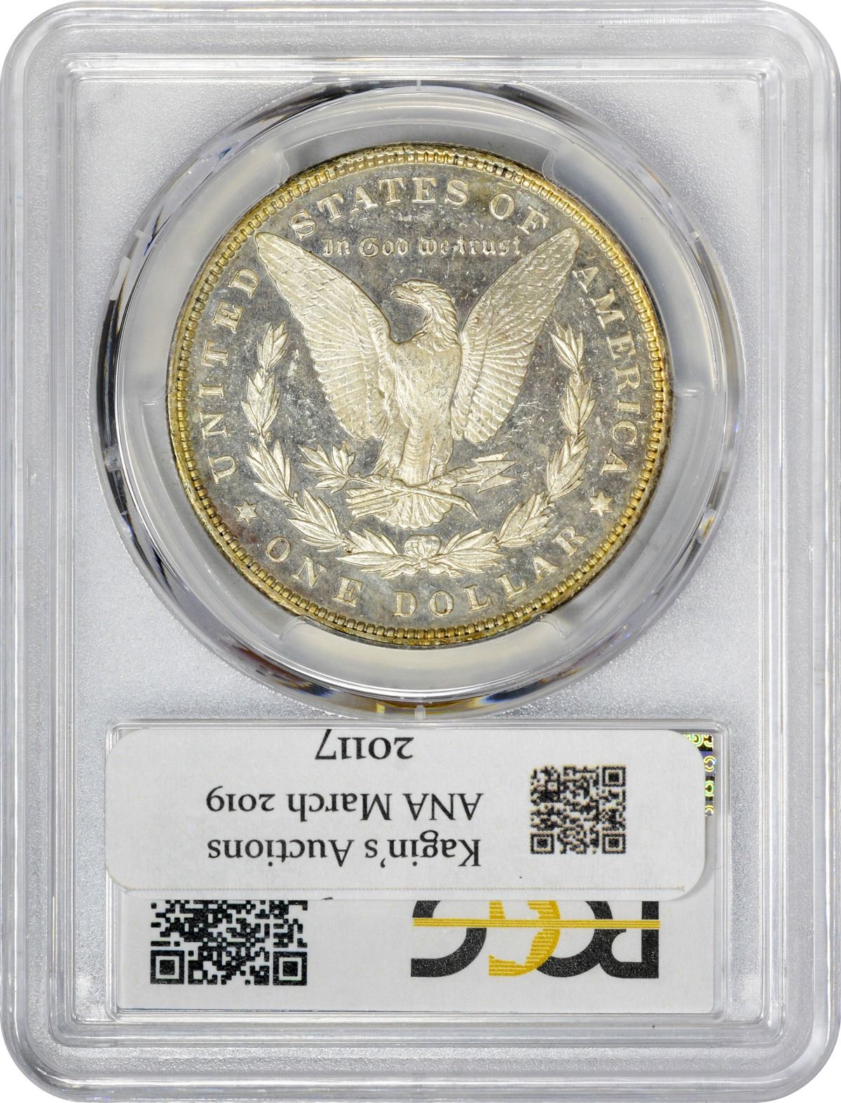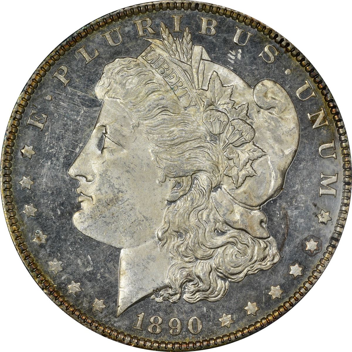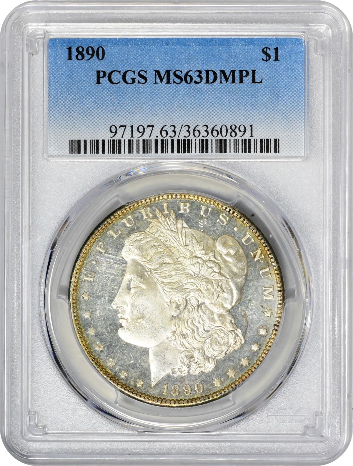 The brilliant reflective fields and frosted motifs form a pleasing DMPL contrast, and a dash of golden iridescence at the rims adds to the overall appeal. Just a few faint hairlines from a finer designation. PCGS #97197