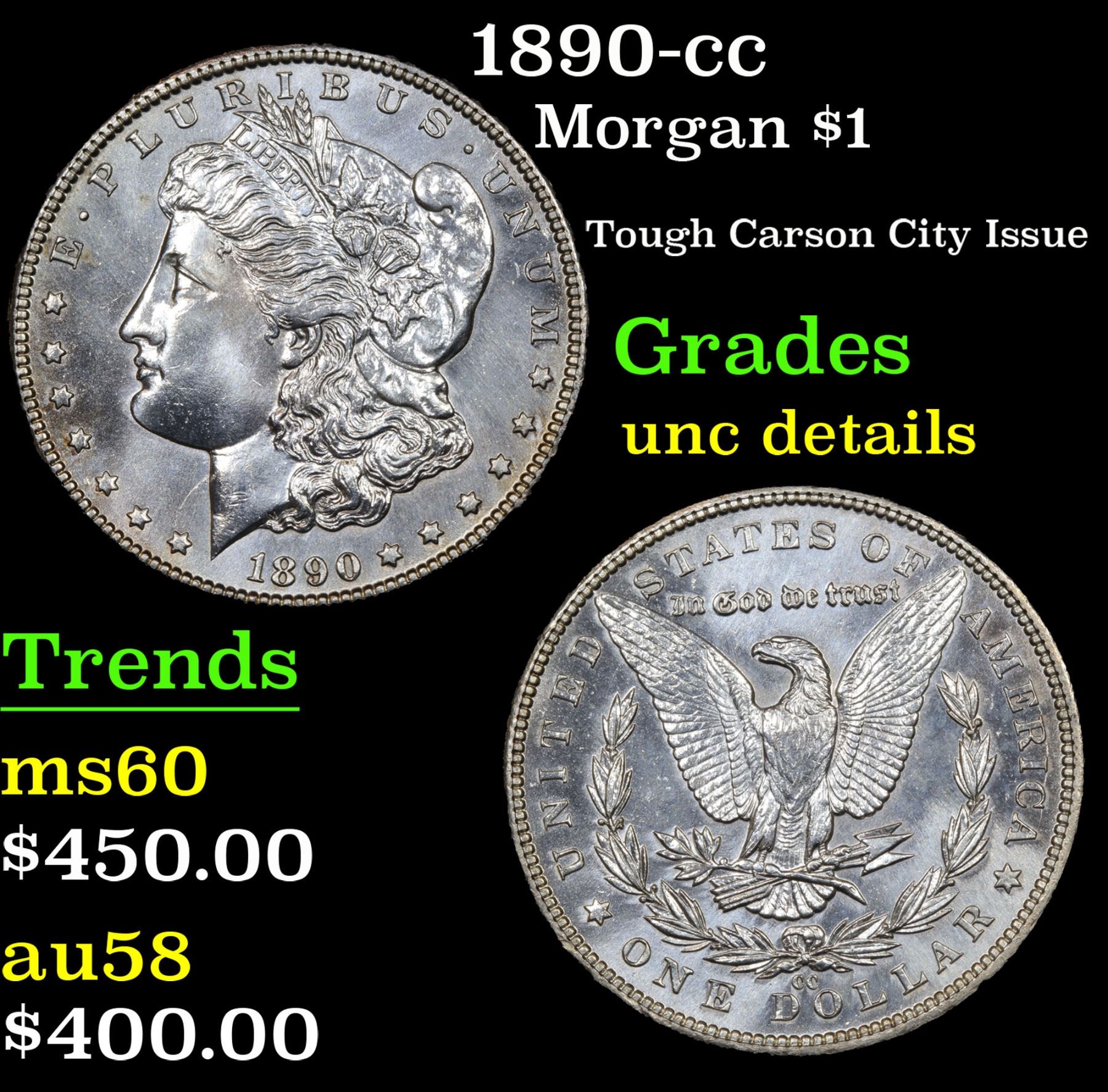 1890-cc Tough Carson City Issue . Morgan Dollar $1 Grades Unc Details.