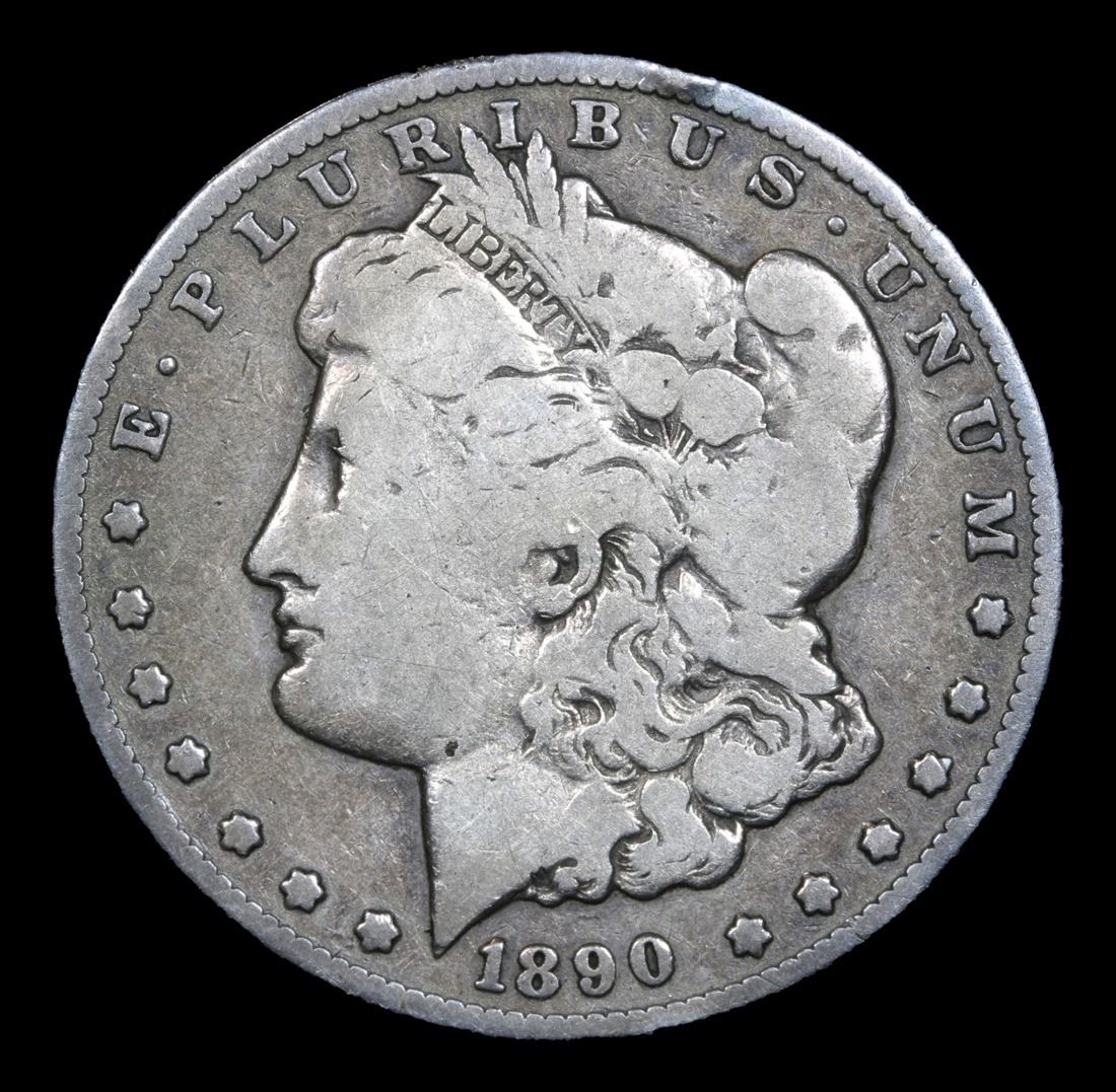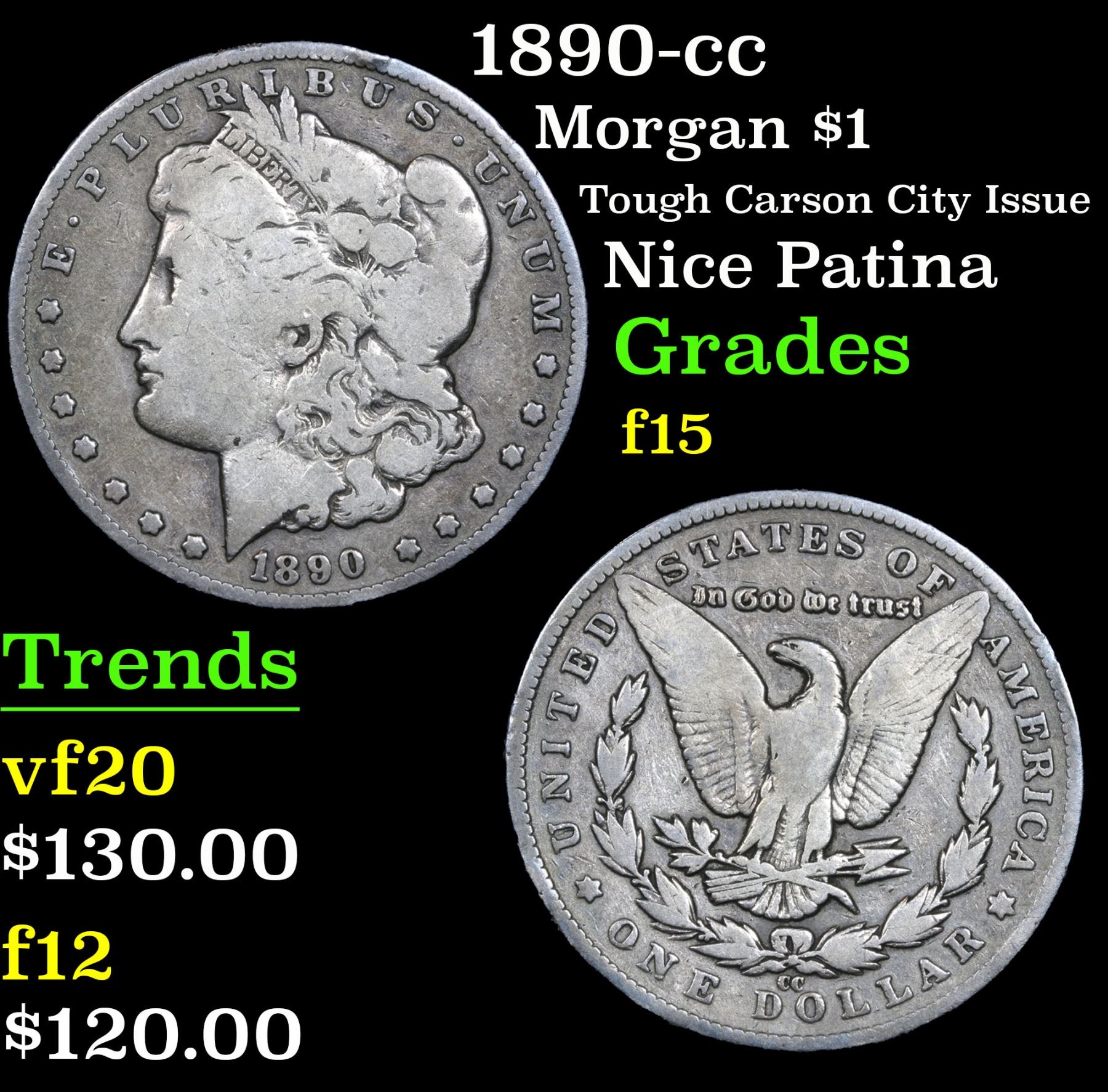 1890-cc Morgan Dollar $1 Grades f+. Tough Carson City Issue Nice Patina