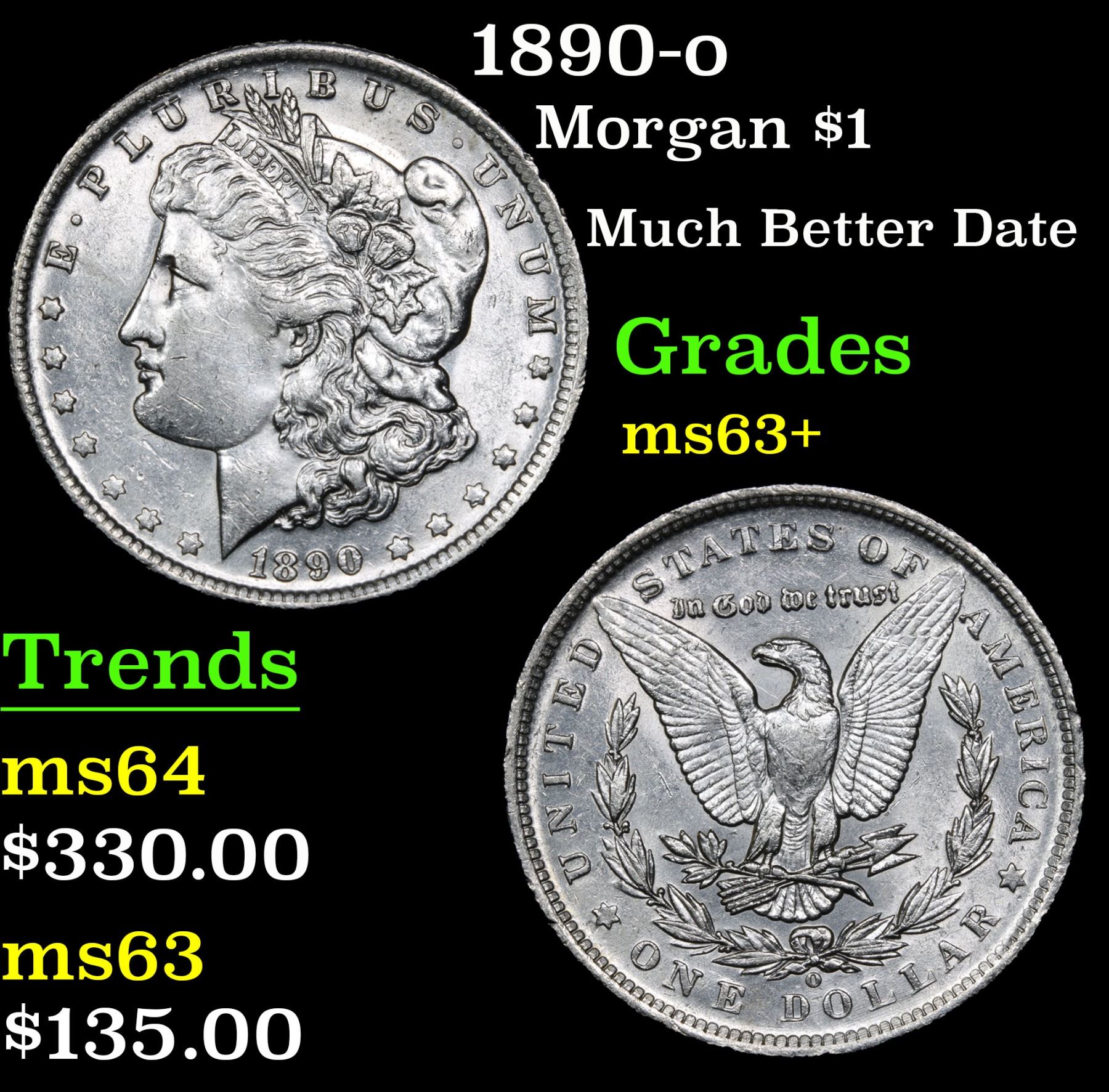 1890-o Morgan Dollar $1 Grades Select+ Unc. Much Better Date