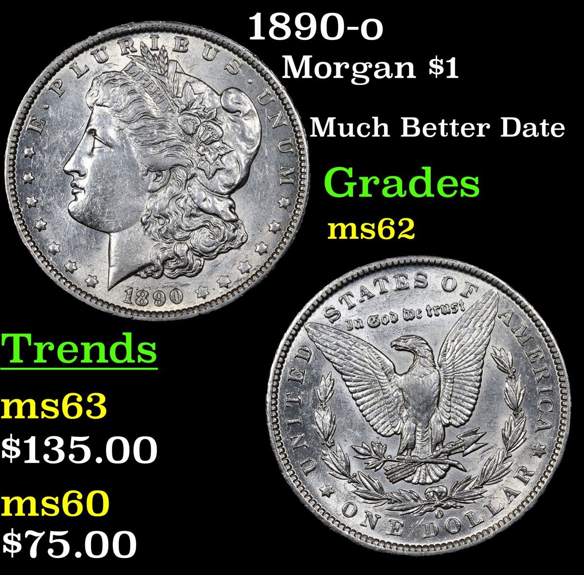 1890-o Much Better Date . Morgan Dollar $1 Grades Select Unc.
