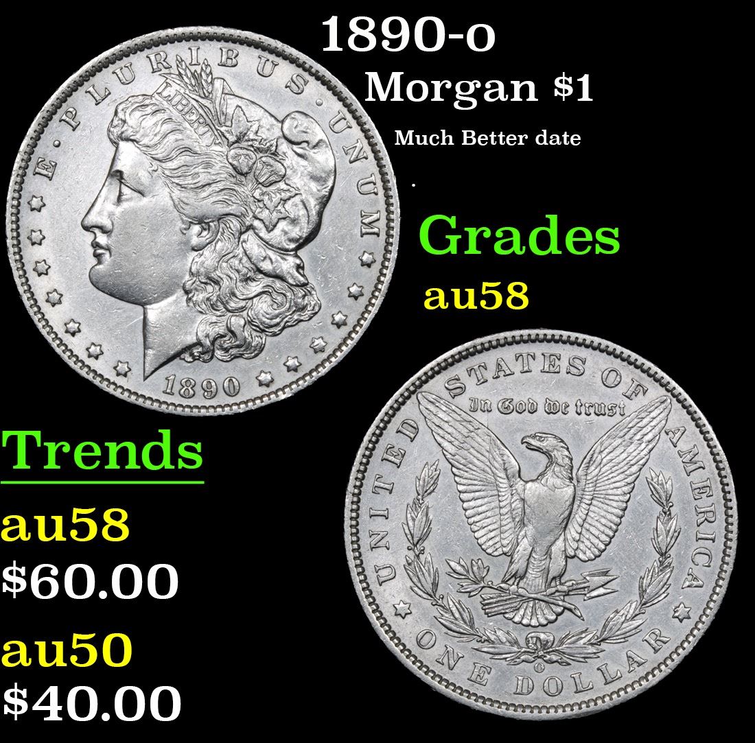 1890-o Much Better date . Morgan Dollar $1 Grades Choice AU/BU Slider.