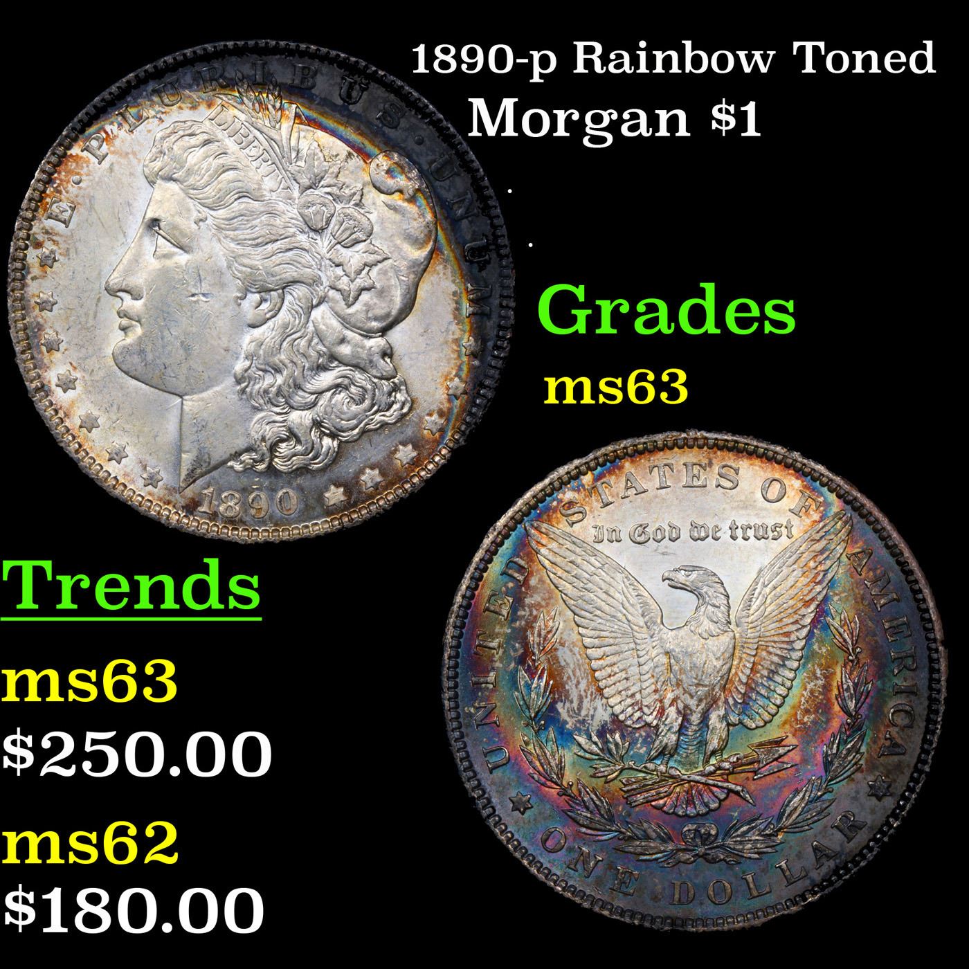 1890-p Rainbow Toned Morgan Dollar $1 Grades Select Unc.