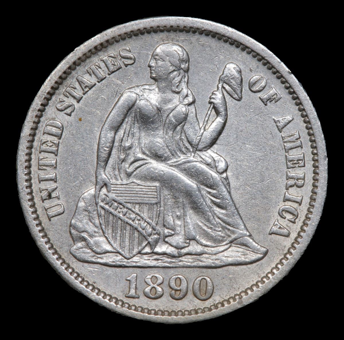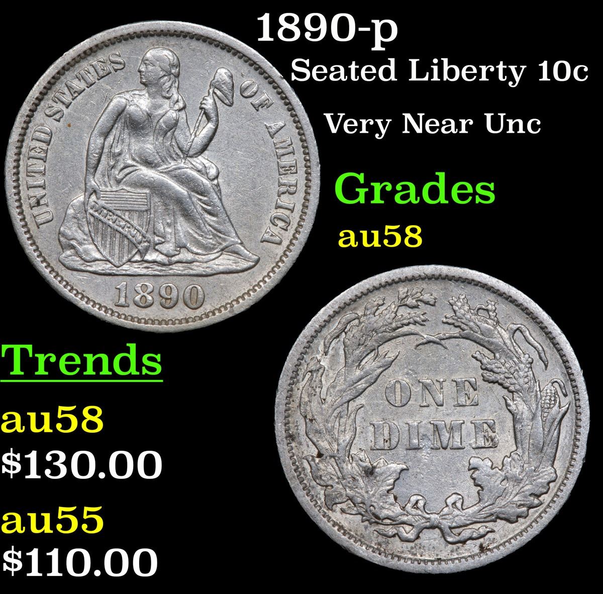 1890-p . Very Near Unc Seated Liberty Dime 10c Grades Choice AU/BU Slider.