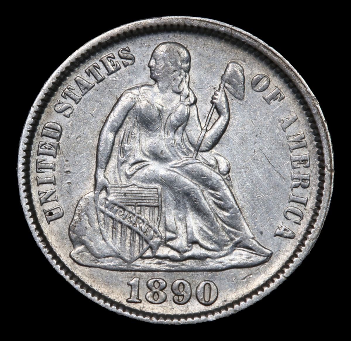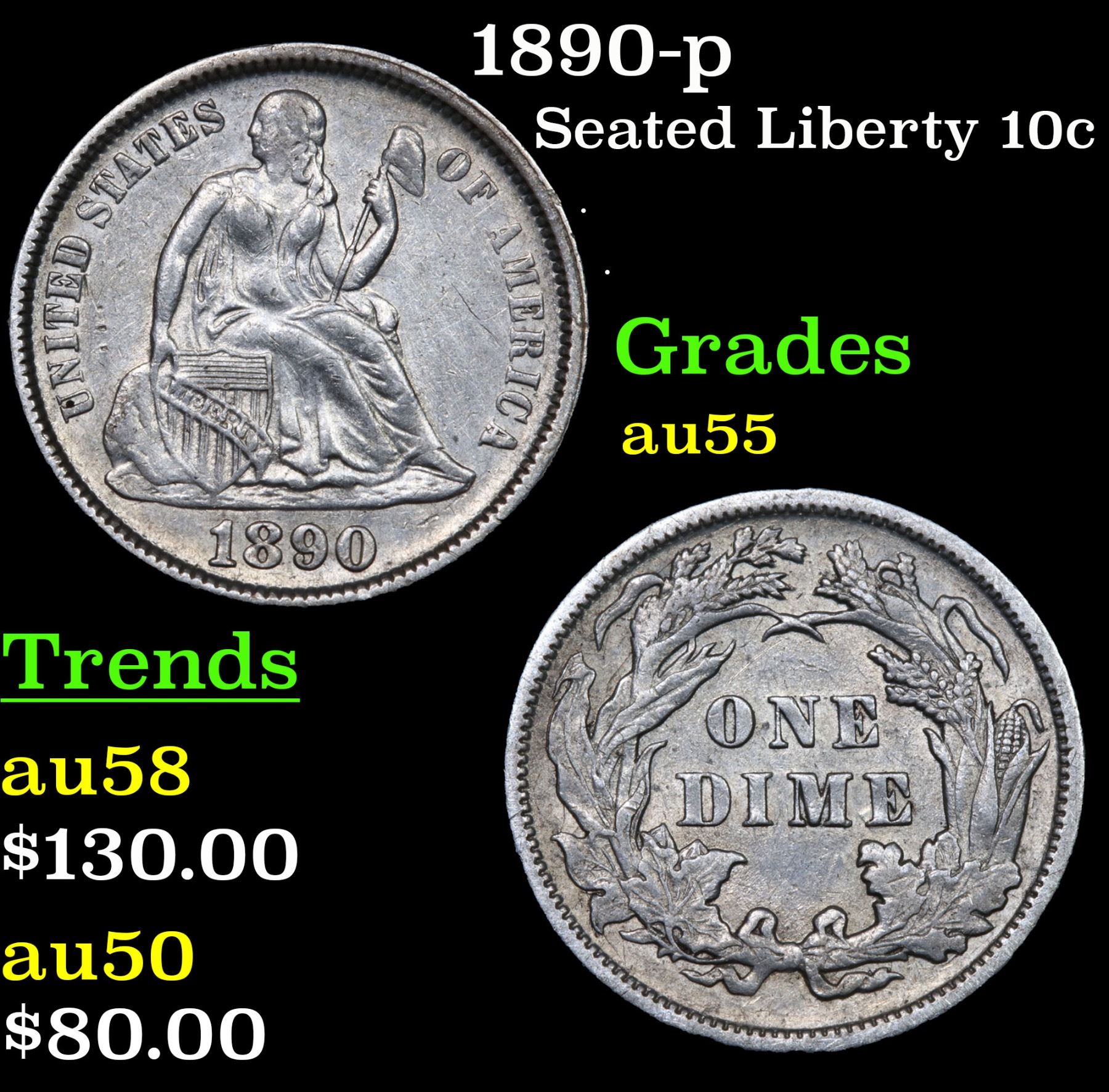1890-p . . Seated Liberty Dime 10c Grades Choice AU.