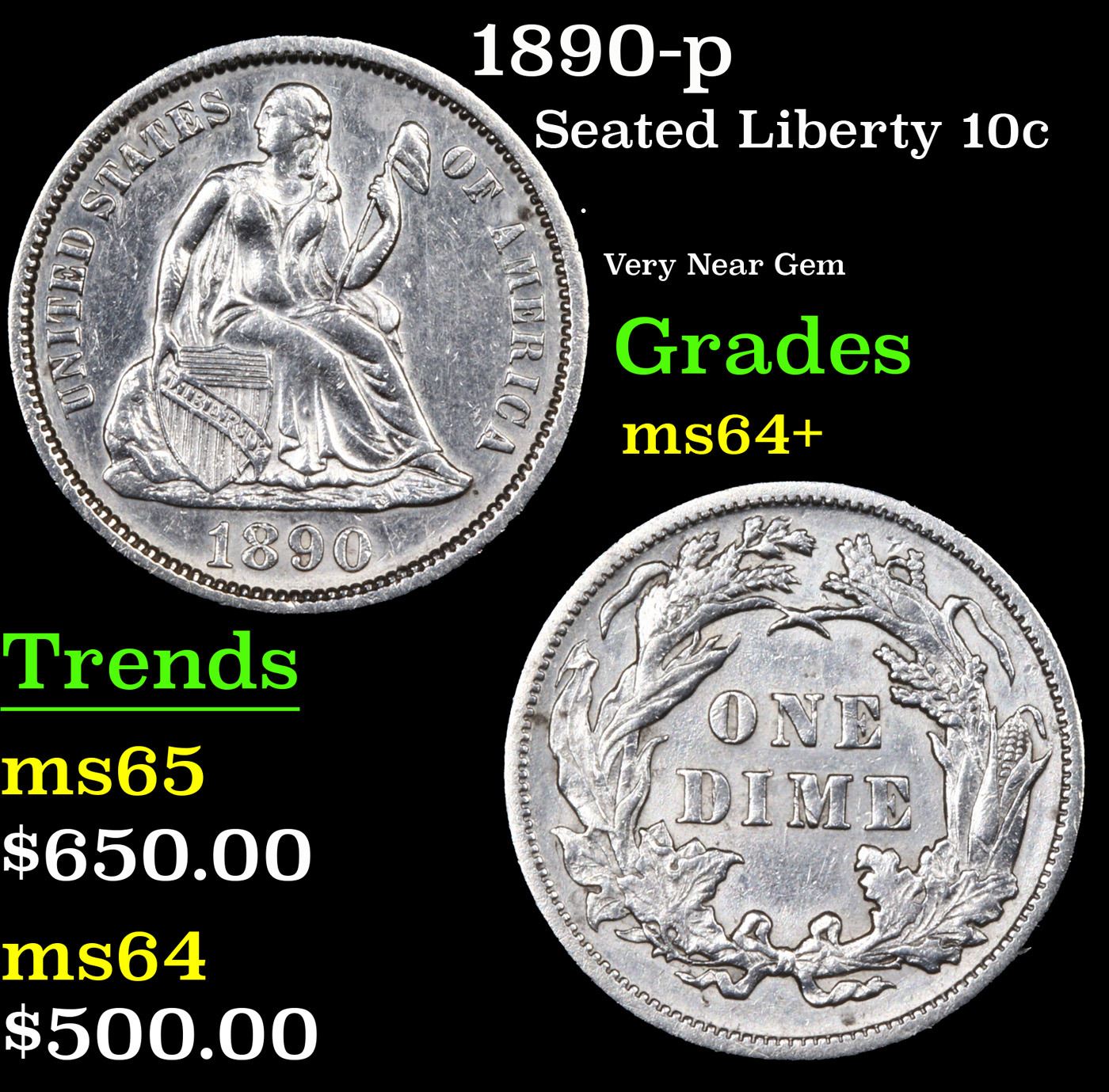 1890-p Seated Liberty Dime 10c Grades Choice+ Unc.
