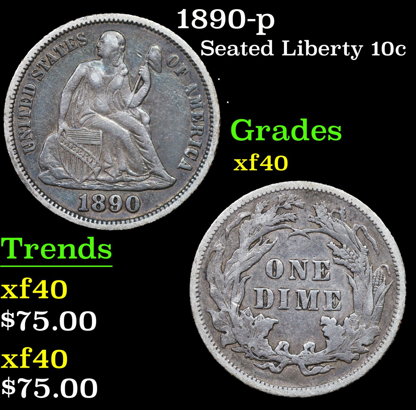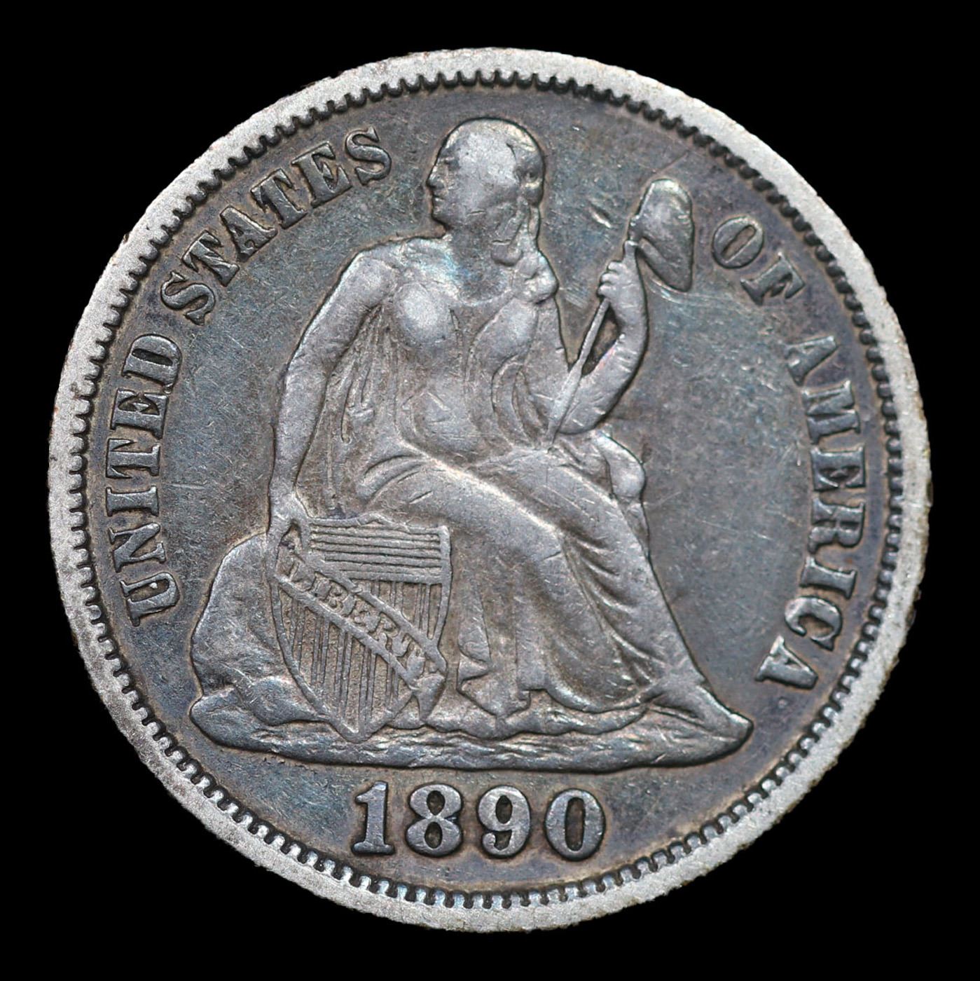 1890-p Seated Liberty Dime 10c Grades xf.