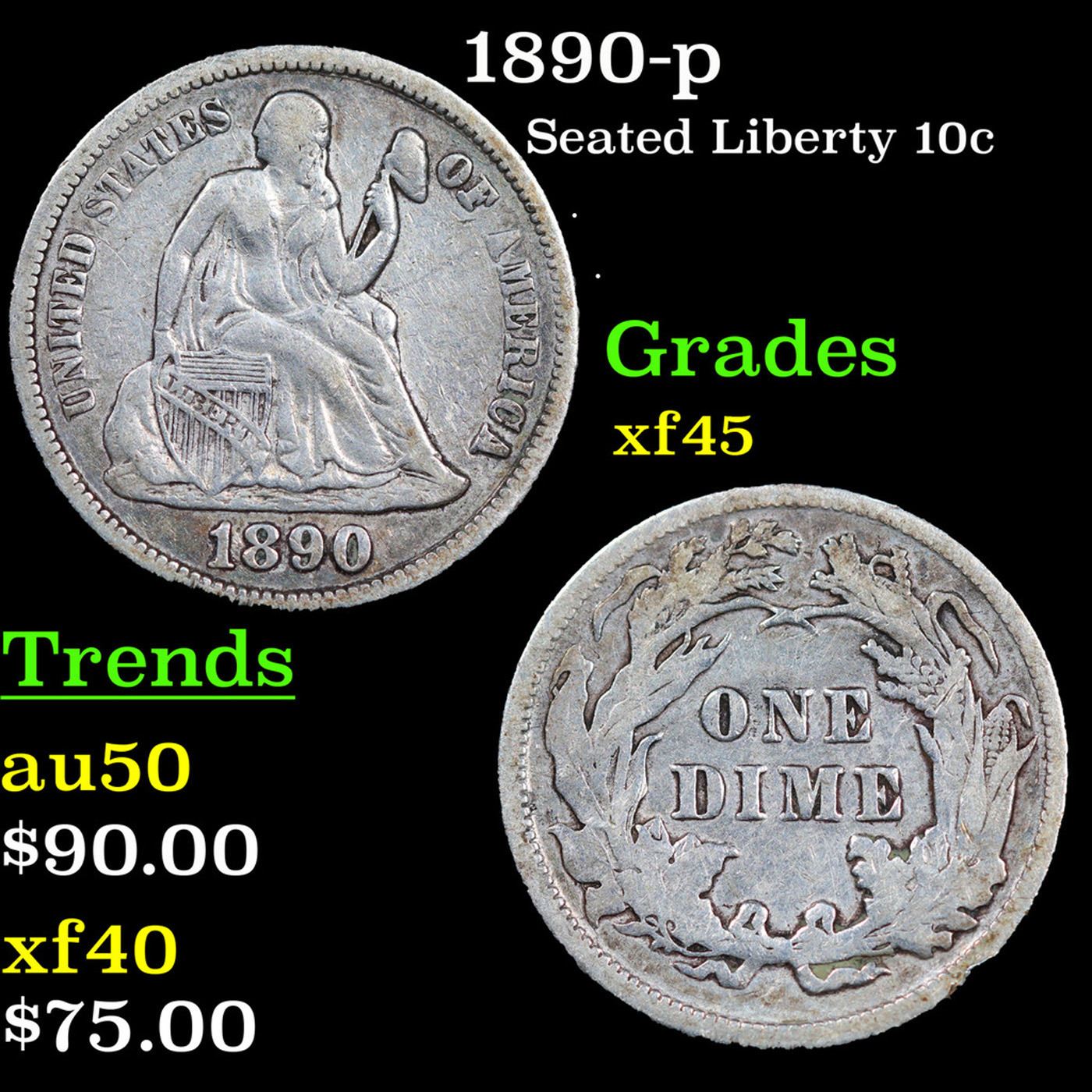 1890-p Seated Liberty Dime 10c Grades xf+.