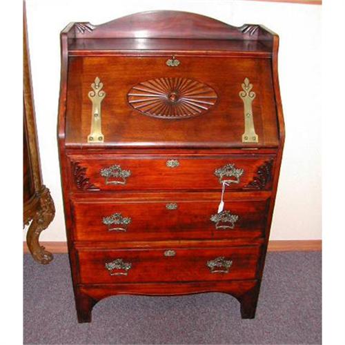 <tr><td>Title:1890's Mahogany RJ Horner Drop Front Desk</td></tr>