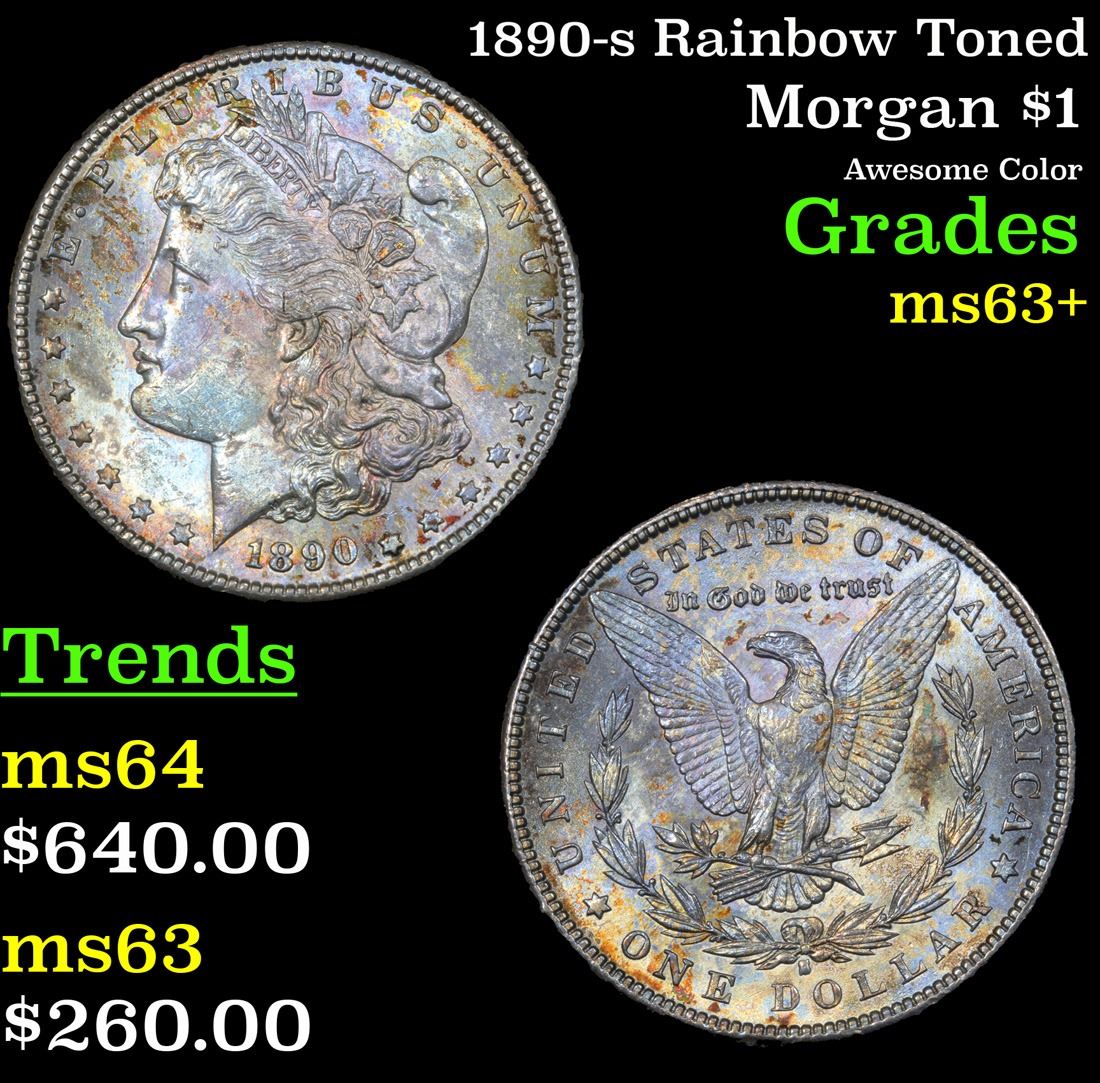 1890-s Rainbow Toned Awesome Color . Morgan Dollar $1 Grades Select+ Unc. A Corey's Pick, Bid to Win, Don't let it get Away Coin