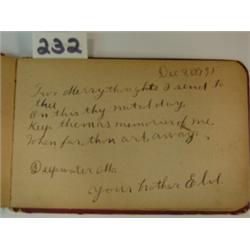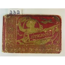 3 1/2" by 5 1/2", 1890'S Autograph book, red and gold Victorian cover. It is from the Deepwater, Missouri area and dated and inscribed with messages. Good cond.