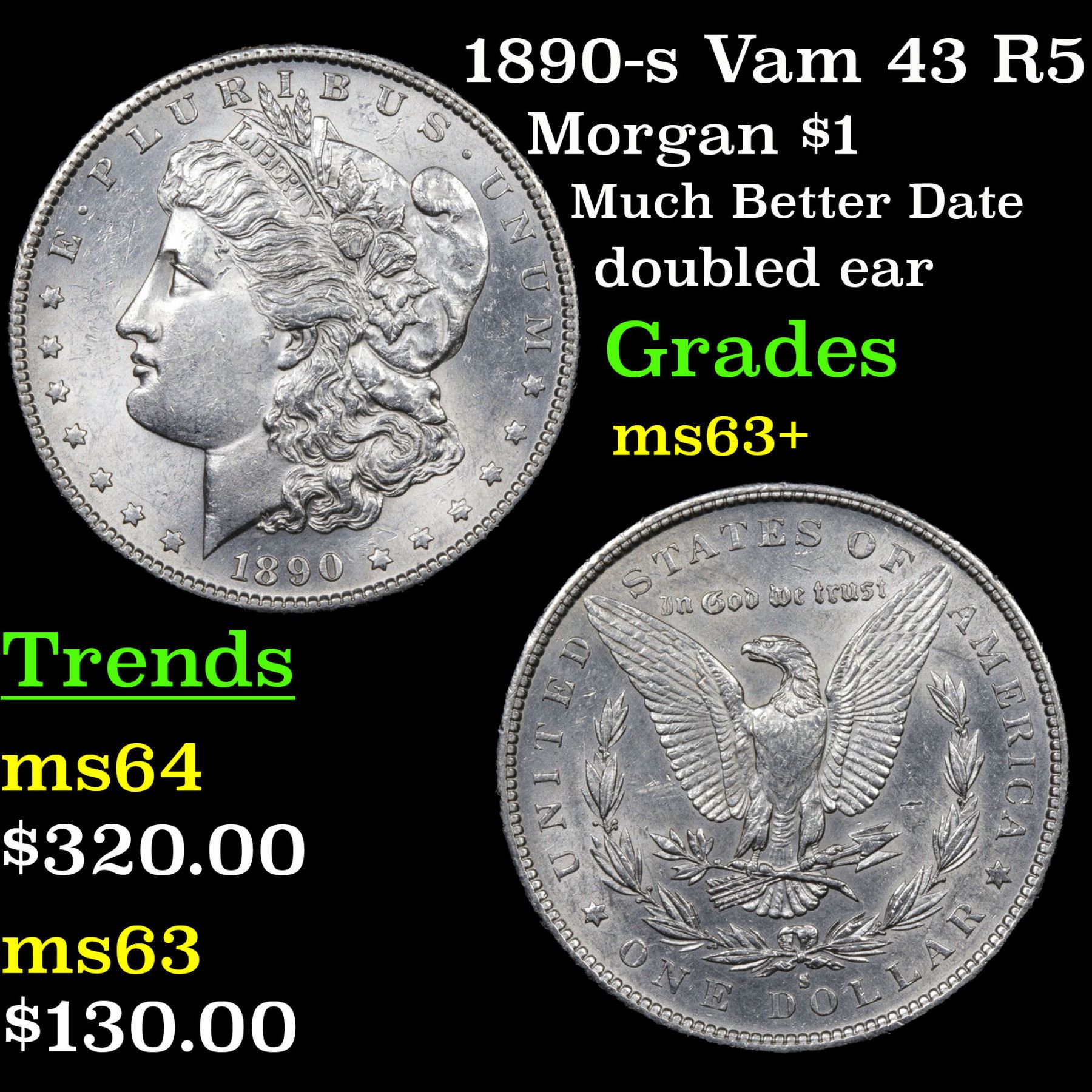 1890-s Vam 43 R5 Morgan Dollar $1 Grades Select+ Unc.