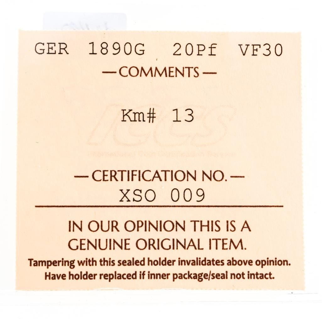 1890G Germany 20Pf KM#13 VF30 ICCS