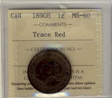 1890H 1¢ ICCS MS60 Trace Red