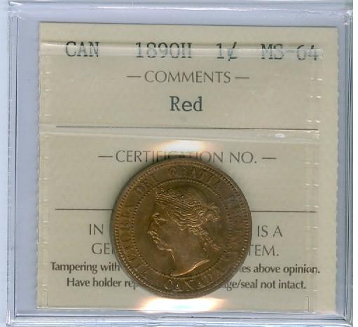 1890H 1¢ ICCS MS64RD. 70% red with lustre.