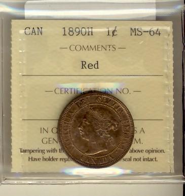 1890H 1¢ ICCS MS64RD. Sharp lustrous example.