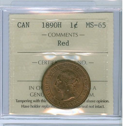 1890H 1¢ ICCS MS65 Red. A nicely struck copper-red Gem with virtually immaculate surfaces. Scarce with lots of Red color. Only one finer.