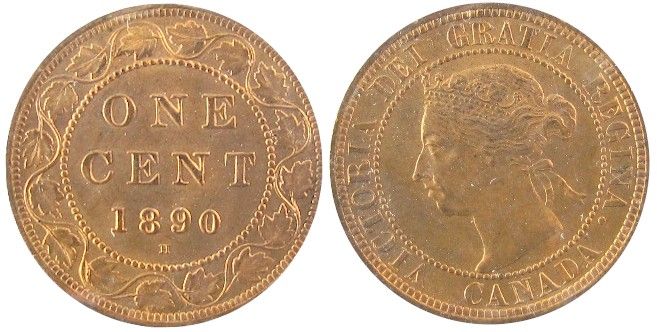1890H 1¢ ICCS MS65RD. Nice 95% red issue. A lovely Gem example.