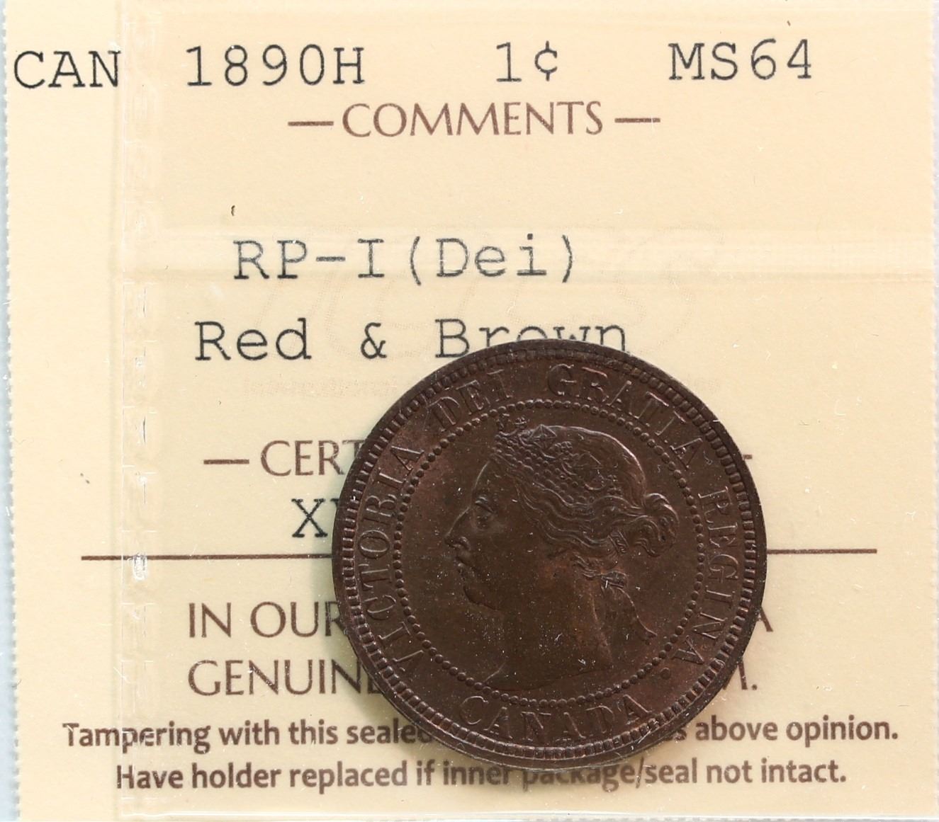 1890H 1¢ "RP-I (DEI) ICCS Choice Mint State-64RB
