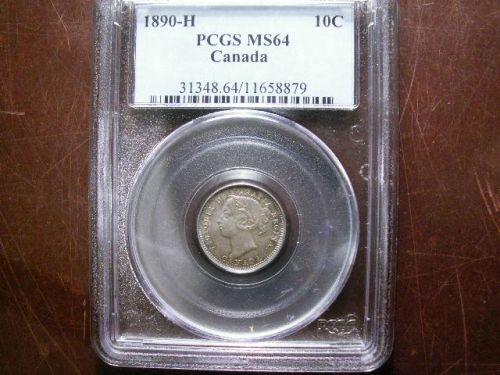 1890H 10¢ PCGS MS64PQ. Superbly struck, lovely colours and very lustrous. A tough date!