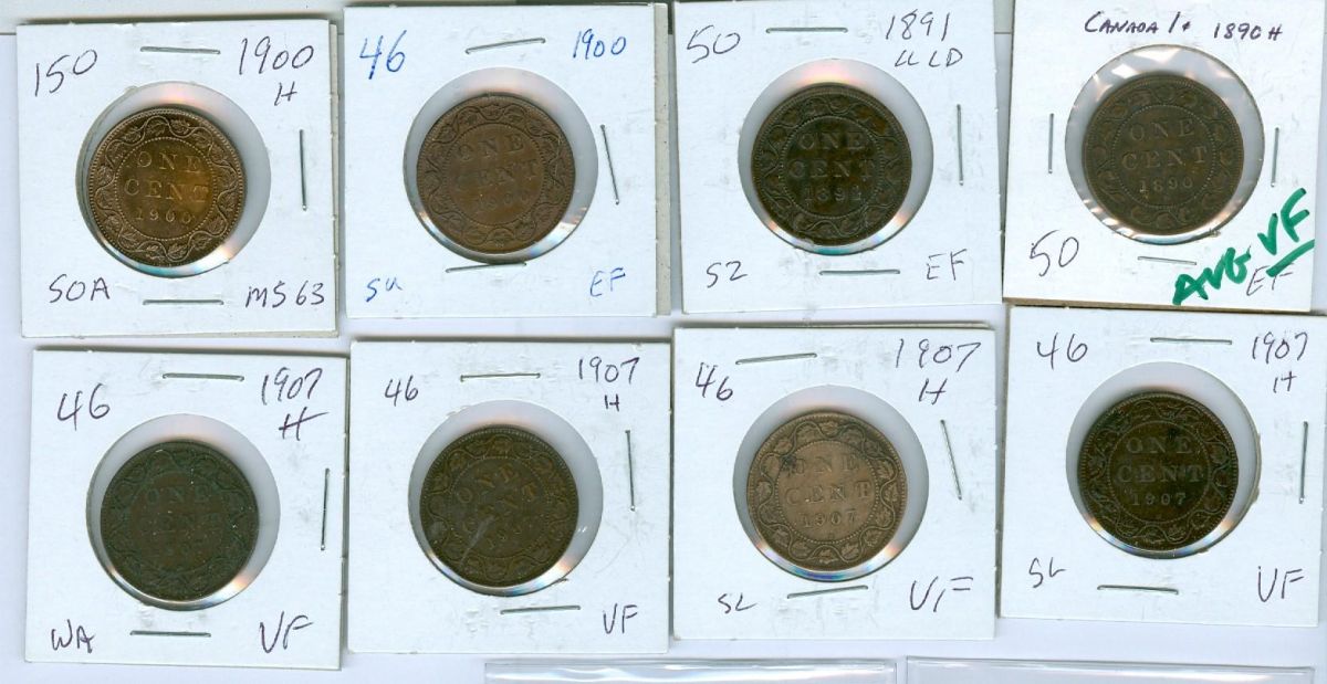 1890H-1907H 1¢. Lot of 8 cents including 1890H, 1891LLLD, 1900, 1900H, 1907H (4). Abt VG to VF. Should be viewed.