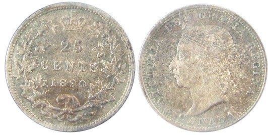 1890H 25¢ ICCS MS63, light but attractive toning. Tough date