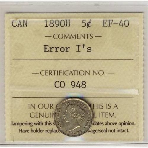 1890H 5¢ ICCS EF40. Designated Error I's.