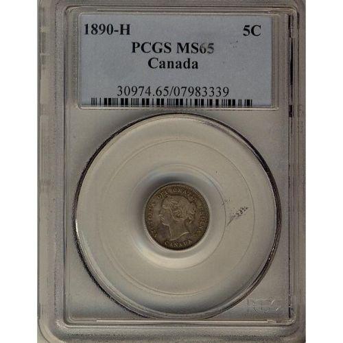 1890H 5¢ PCGS MS65 PQ+ Nice tone over full luster. Excellent strike with clean fields and nice surfaces.